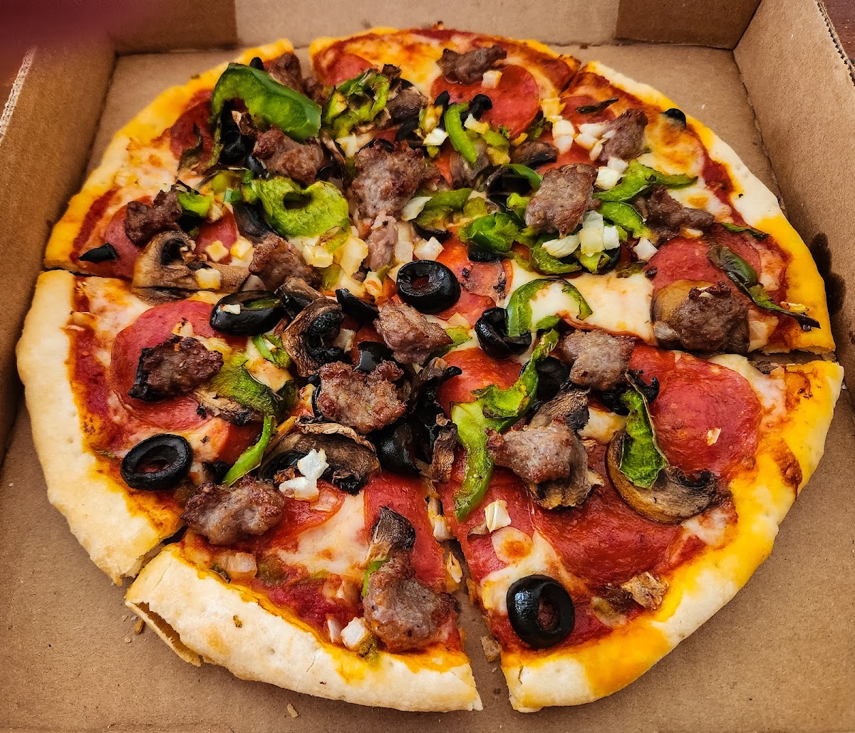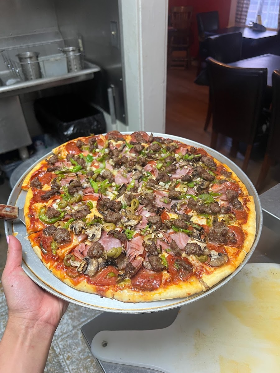 Cary's Pizza stands out for its signature pies, each packed with fresh, high-quality ingredients. The Works Pizza is a fan favorite, loaded with a variety of meats and vegetables, making it a perfect choice for those who want a bit of everything. If you're someone who enjoys bold, spicy flavors, the All Meat Pizza with Jalapeños is an absolute must-try. The combination of smoky meats and the kick of jalapeños creates a fiery, unforgettable taste.